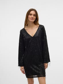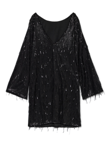 Jokainen juhla ansaitsee oikeanlaisen juhlamekon. Tämä katseet kääntävä mekko saa sinut juhlatuulelle hetkessä. Yhdistä se korkojen kanssa ja lisää asuun suosikkijuhla-asusteesi ja vaikuttava juhlailmeesi on valmis. - Tuotetyyppi : Mekko - Kaula : O-pääntie - Hiha : Pitkät hihat - Hihat : Leveät hihat - Pituus/koko : Lyhyt - Lisä yksityiskohdat : Paljettikoristelu - Malli : Regular fit
