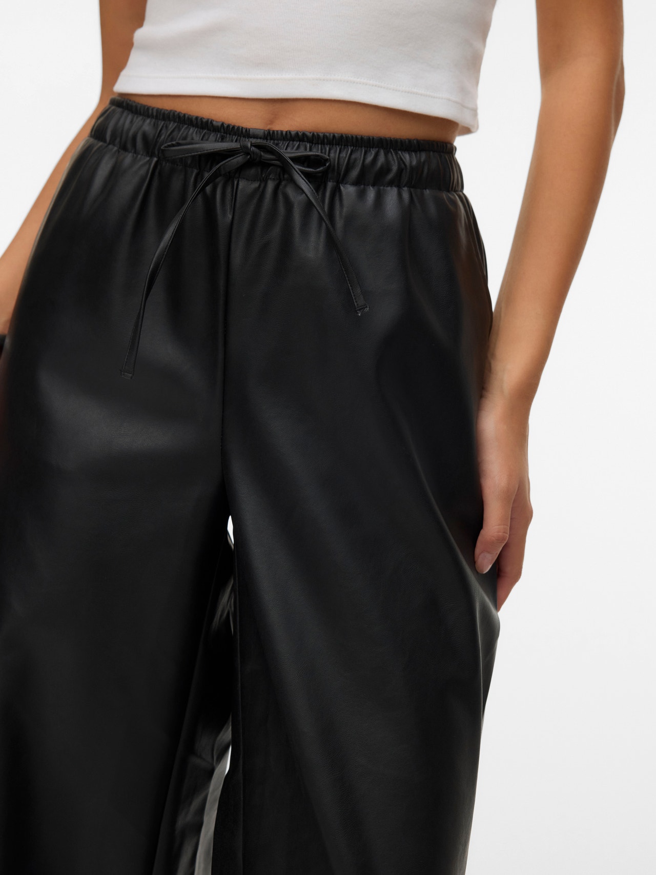 Wide fit -malliset housut tulevat aina olemaan vaatekaapin klassikkotuote – ja olemme siitä erittäin iloisia. Ne ovat luottohousut, jotka sitovat koko vaatekaappisi yhteen ja saavat sinut rakastumaan leveisiin lahkeisiin. Yhdistä ne tennareiden ja ylisuuren paidan kanssa, niin saat coolin arkiasun, tai cropatun topin ja korollisten saappaiden kanssa, niin olet valmis lähtemään ulos. - Tuotetyyppi : Housut - Sulkeminen : Kiinnitys solmittavin nyörein - Taskut : Sivutaskut - Vyötärö : Matala vyötärö - Malli : Wide leg fit