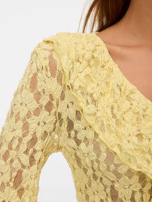 Säväytä nätin juhlatopin avulla! Aina romanttisen naisellisista topeista rentoihin toppeihin. Juhlatoppiemme valikoima täyttää kaikki tarpeet. Muunna rento tyyli juhlatyyliksi helposti tämän mallin avulla. - Tuotetyyppi : Pusero - Kaula : V-pääntie - Hiha : Pitkät hihat - Hihat : Leveät hihat - Sulkeminen : Nappikiinnitys - Lisä yksityiskohdat : Röyhelöt - Malli : Regular fit