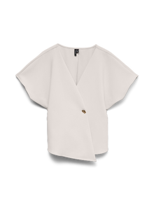Etsitkö uutta lempiarkitoppia? Meillä olisi yksi vaihtoehto. Tästä topista tulee heittämällä uusi luottovaatteesi niille päiville, kun et jaksa säväyttää, mutta haluat silti näyttää trendikkäältä. Yhdistä korujen kanssa ja lisää asuun hieman kimallusta, tai pidä asu yksinkertaisena kevyen takin avulla. - Tuotetyyppi : Toppi - Kaula : V-pääntie - Hiha : Lyhyet hihat - Hihat : Lepakkohihat - Lisä yksityiskohdat : Koristenapit - Malli : Regular fit - Elämäntapa : Formaali