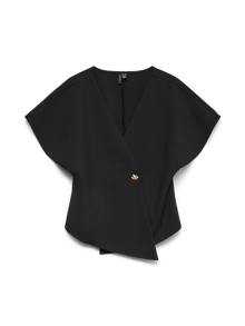 Etsitkö uutta lempiarkitoppia? Meillä olisi yksi vaihtoehto. Tästä topista tulee heittämällä uusi luottovaatteesi niille päiville, kun et jaksa säväyttää, mutta haluat silti näyttää trendikkäältä. Yhdistä korujen kanssa ja lisää asuun hieman kimallusta, tai pidä asu yksinkertaisena kevyen takin avulla. - Tuotetyyppi : Toppi - Kaula : V-pääntie - Hiha : Lyhyet hihat - Hihat : Lepakkohihat - Lisä yksityiskohdat : Koristenapit - Malli : Regular fit - Elämäntapa : Formaali