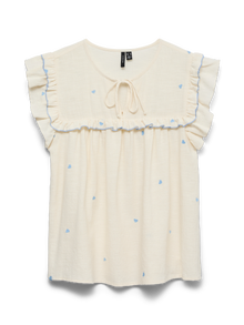Etsitkö uutta lempiarkitoppia? Meillä olisi yksi vaihtoehto. Tästä topista tulee heittämällä uusi luottovaatteesi niille päiville, kun et jaksa säväyttää, mutta haluat silti näyttää trendikkäältä. Yhdistä korujen kanssa ja lisää asuun hieman kimallusta, tai pidä asu yksinkertaisena kevyen takin avulla. - Tuotetyyppi : Pusero - Kaula : V-pääntie - Hiha : Pitkät hihat - Hihat : Runsaat hihat - Sulkeminen : Kiinnitys solmittavin nyörein - Lisä yksityiskohdat : Koristebrodeeraus - Malli : Regular fit