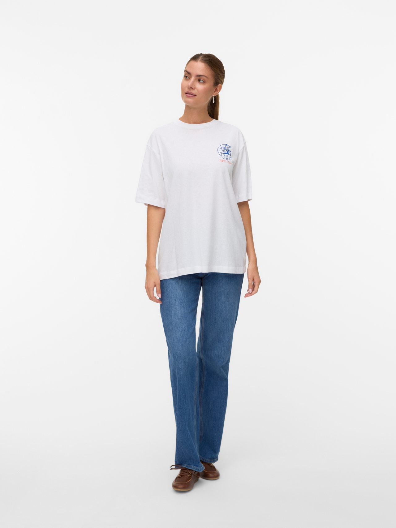 Jos olet epävarma, käytä T-paitaa! Et voi koskaan mennä pieleen T-paidan kanssa - täydellinen valinta viileään ja ajattomaan ilmeeseen. Käytä tätä T-paitaa mukavien poikaystäväfarkkujen kanssa ja lisää pari paksuja lenkkareita urbaaniin kaupunki-ilmeeseen.
