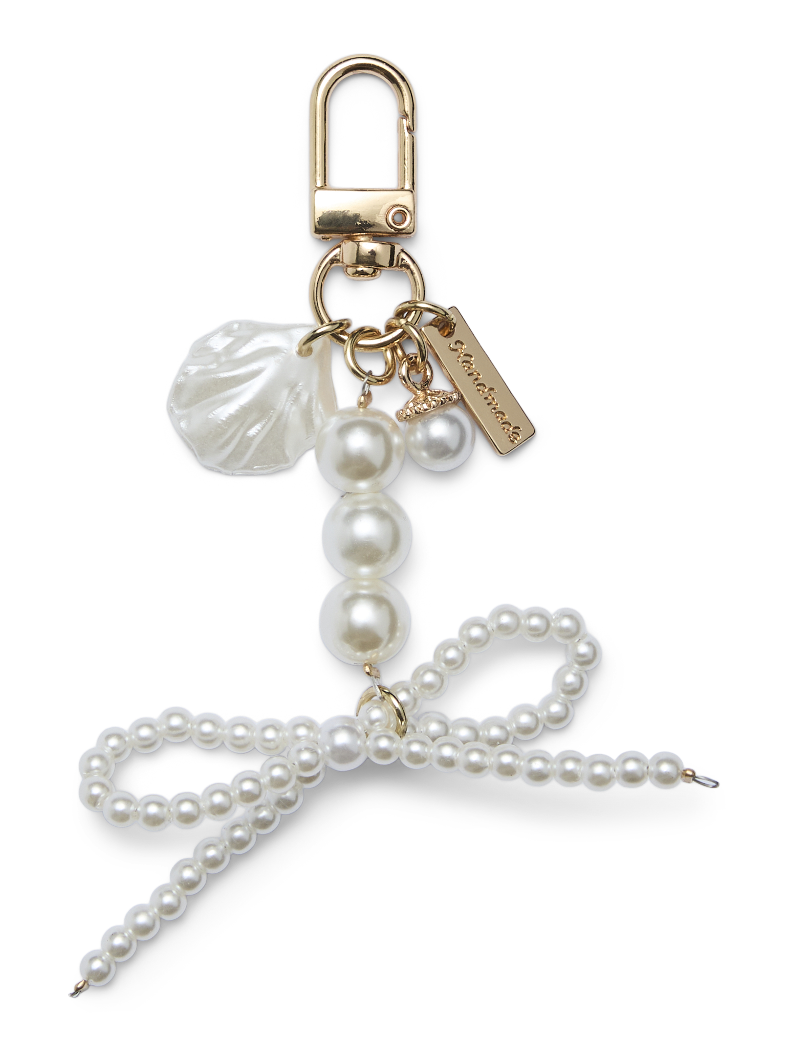 LDS KEYCHAIN W. 1 ROW LARGE FAUX PEARLS AND FAUX PEARL BOW