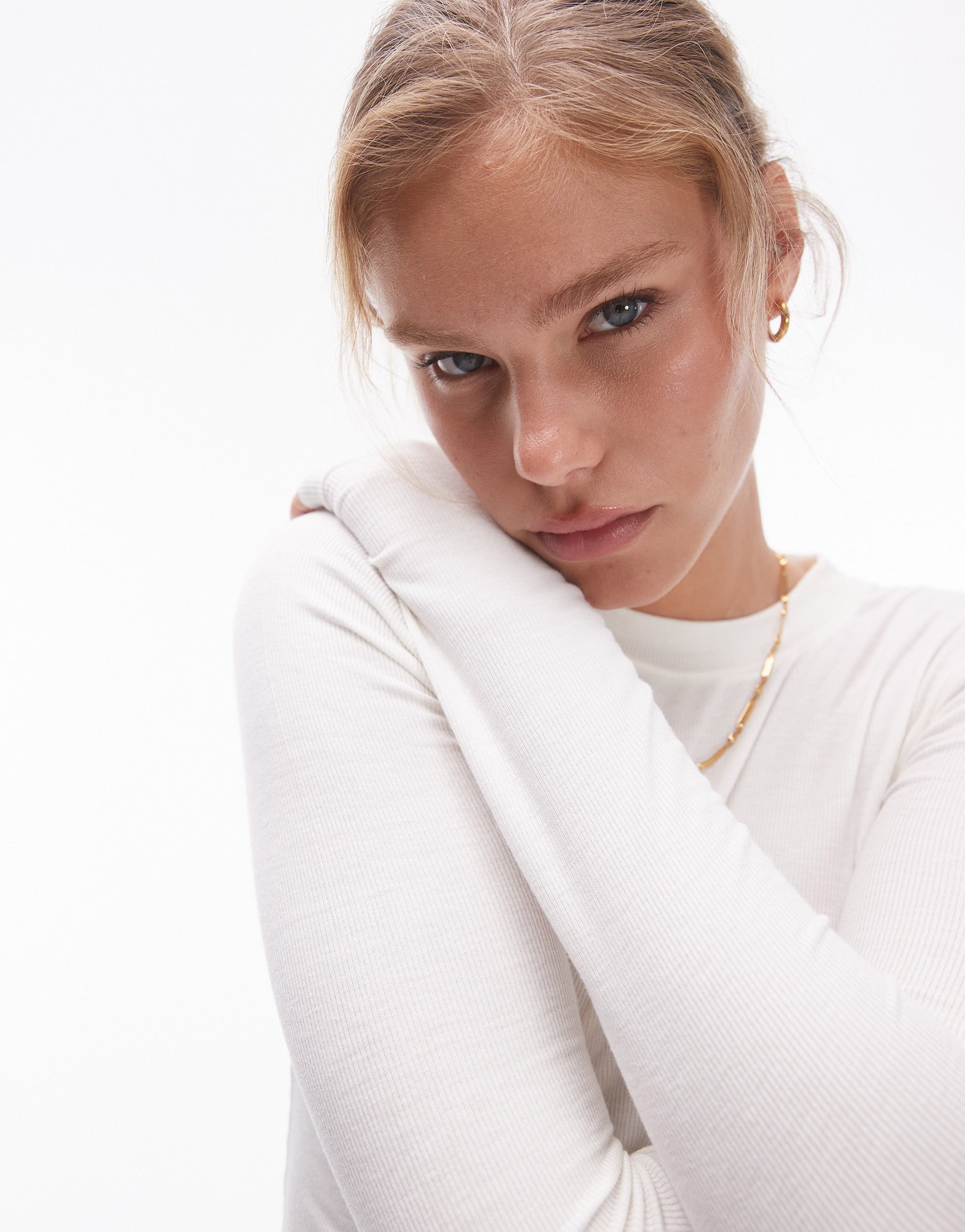 Topshop premium rib long sleeve top in ecru - CREAM