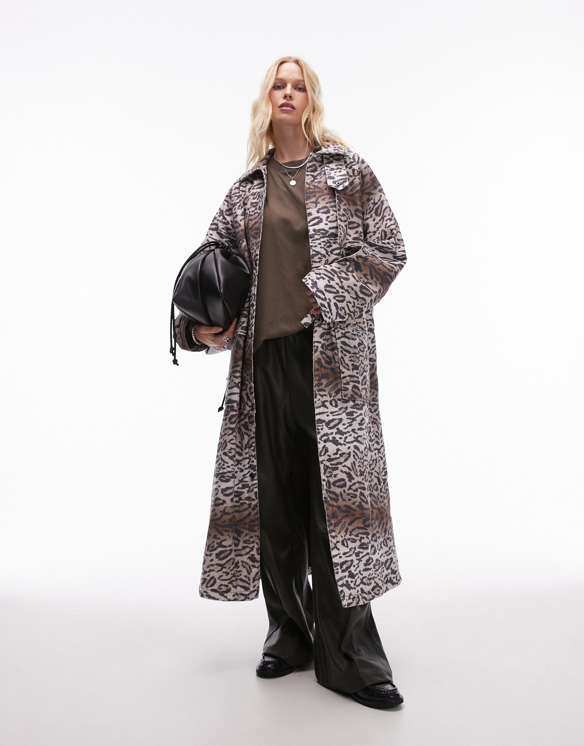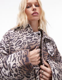 Topshop leopard print cotton long jacket with quilted lining - MULTI