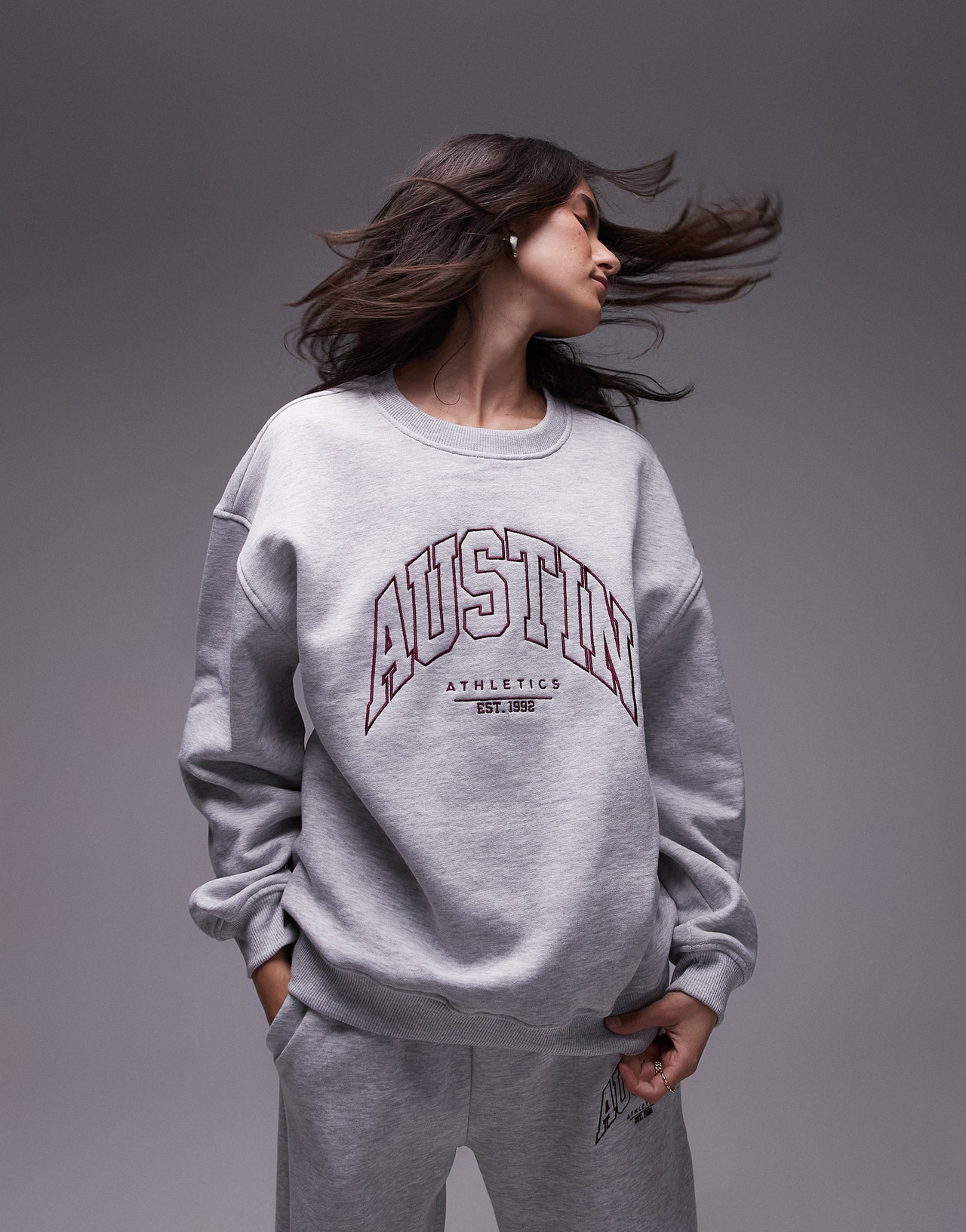 Topshop co ord graphic Austin sweatshirt in grey - LGREY