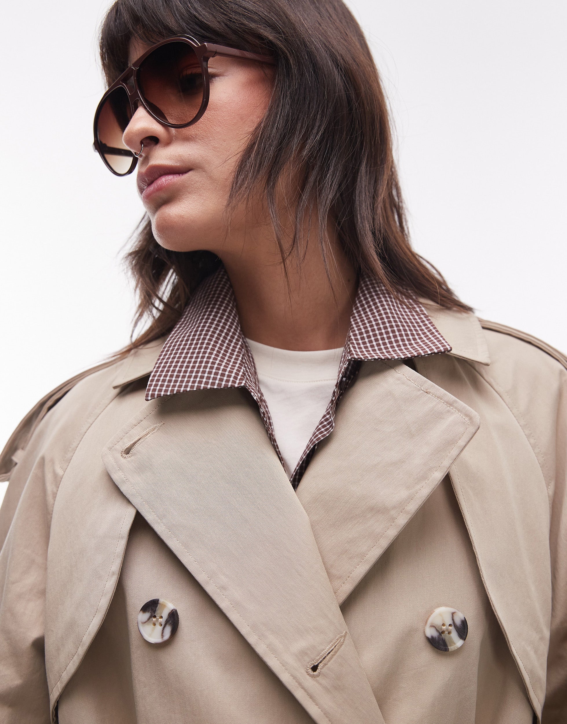 Topshop longline oversized trench coat in stone - STONE