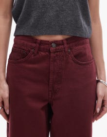 Topshop mid rise loose fit straight jeans in burgundy - BURGUNDY
