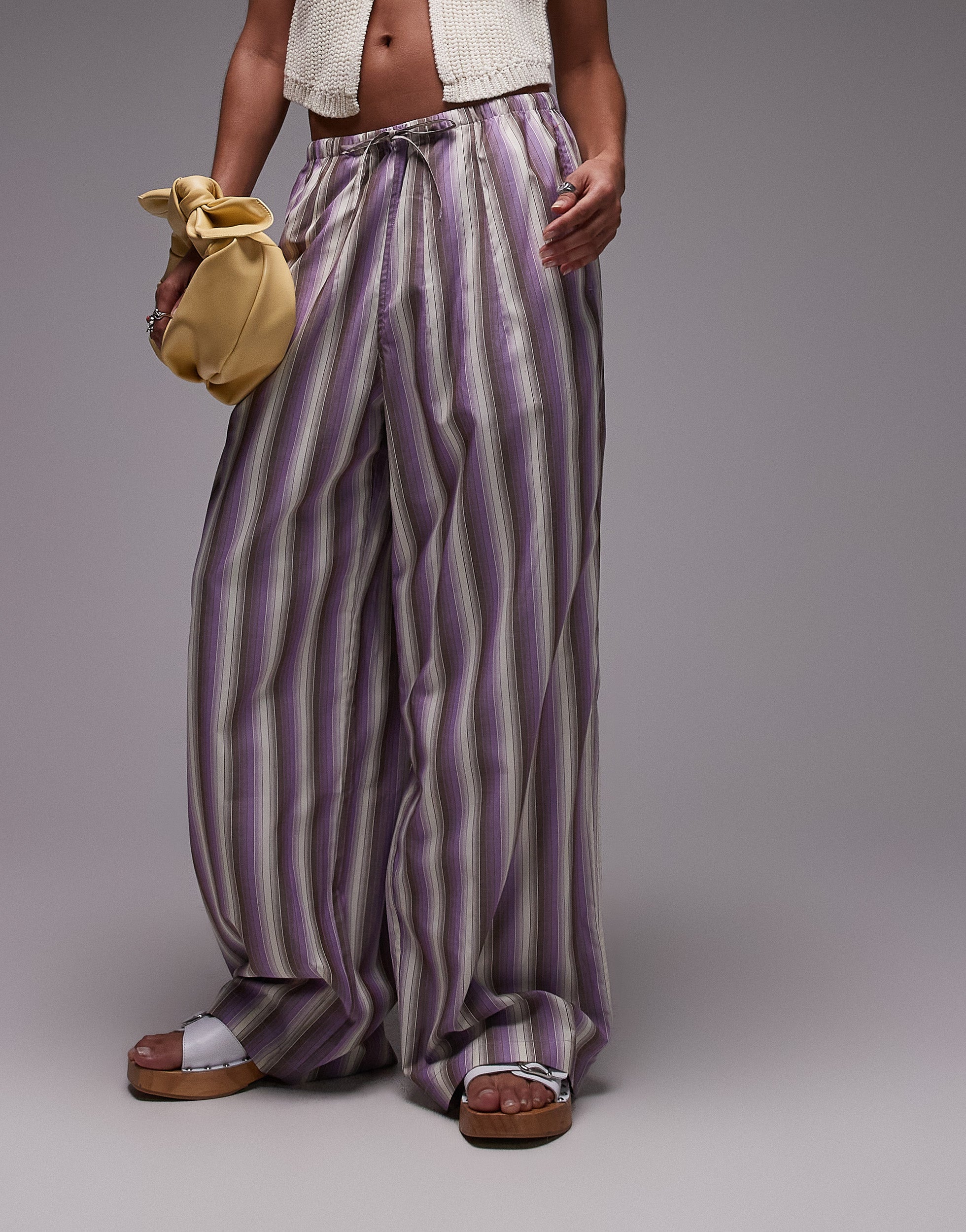 Topshop poplin stripe straight leg trouser in purple - PURPLE