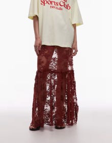 Topshop ruffle seam sheer lace maxi skirt in brown - BROWN