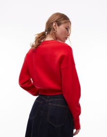 Topshop knitted compact fitted waist cardi in red - RED