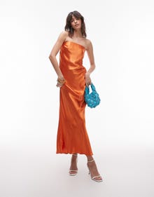 Topshop satin bandeau slip maxi dress in rust - TAN