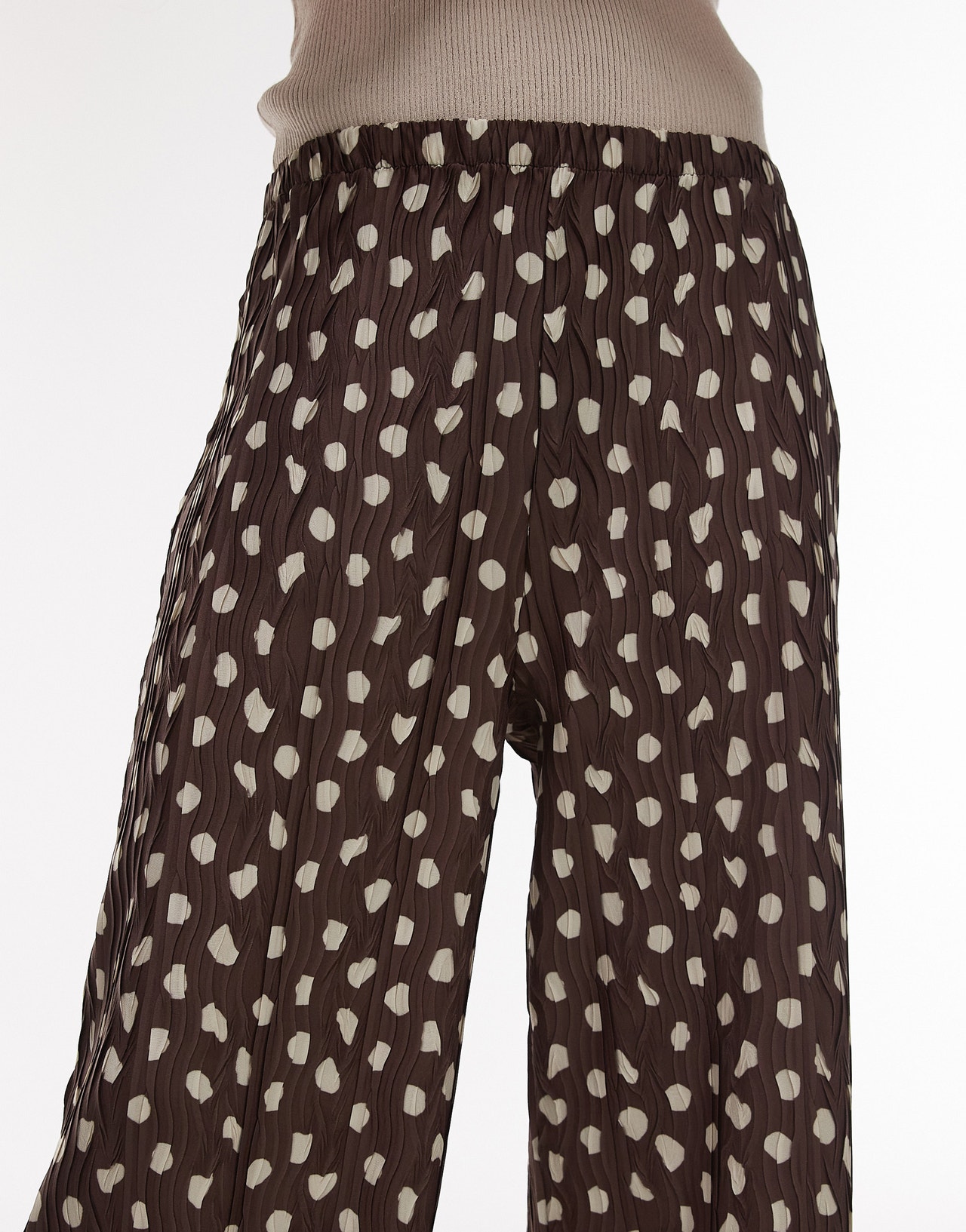 Topshop polka dot plisse wide leg trousers in brown - BROWN