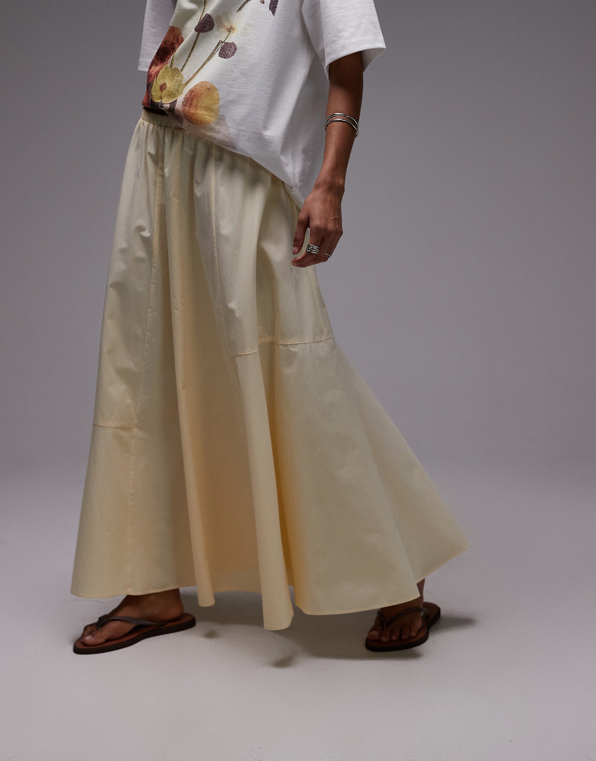 Topshop elasticated waist poplin full midi skirt in buttermilk - YELLOW