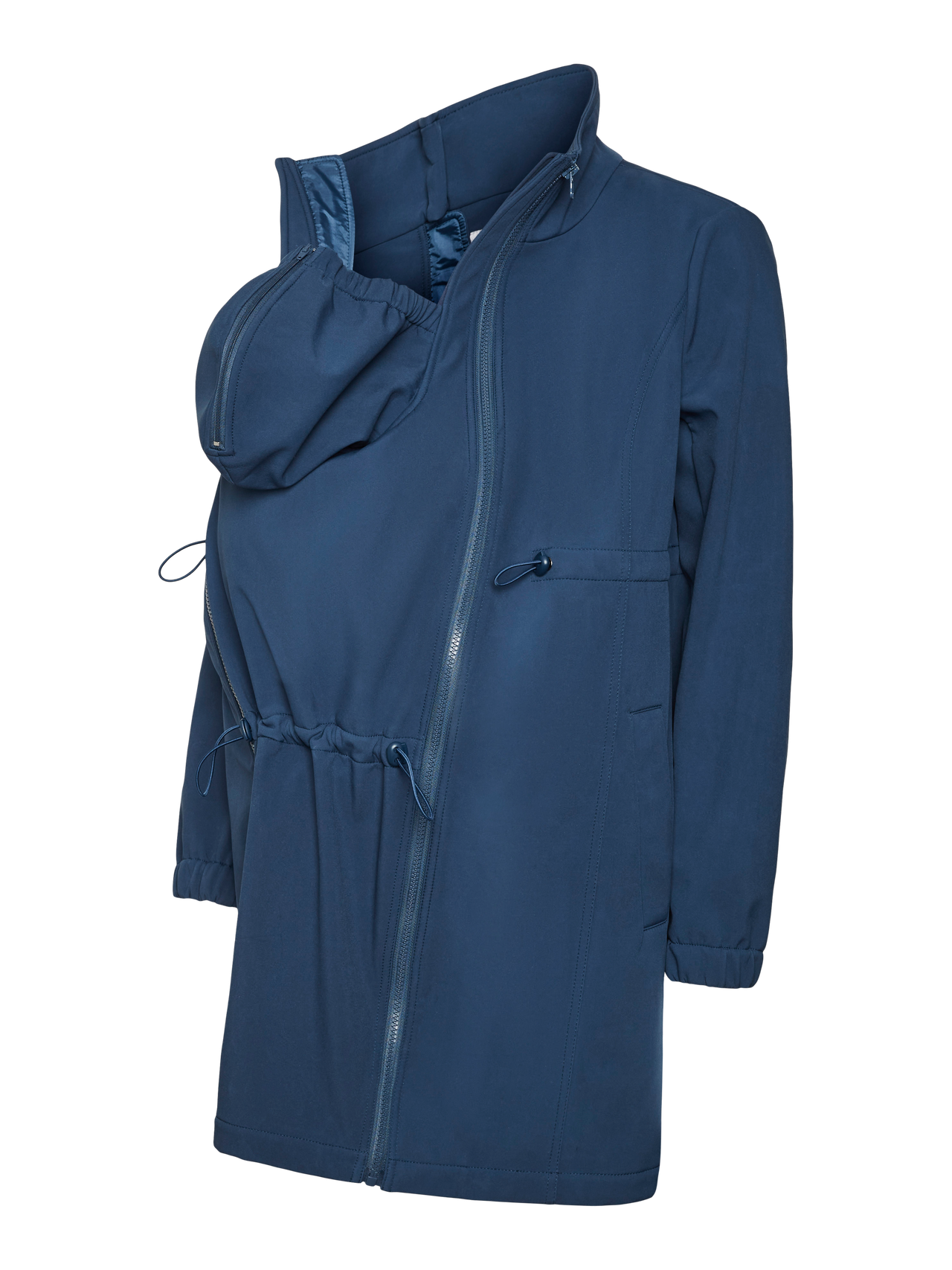 Valmistele vaatekaappisi tulevaan kauteen toiminnallisella ja muodikkaalla 4 in 1 -takilla, jota voit käyttää raskauden aikana, synnytyksen jälkeen lapsesi kantamiseen etu- tai selkäpuolella, tai tavallisena takkina. Käytä raskauden aikana lisäpaneelin kanssa tai säätämällä istuvuutta; synnytyksen jälkeen voit käyttää kätevää kantotoimintoa vauvasi kantamiseen liittämällä kantopaneelin etu- tai selkäpuolelle, jolloin saat tilaa kantoliinalle tai kantorepulle. Käyttämällä tavallisena takkina luot mukavan, selkeälinjaisen ilmeen. - Tuotetyyppi : Softshell-takki - Toiminnallisuus : Vettä hylkivä, Tuulenpitävä - Kaula : Korkea kaulus - Hihansuut : Joustavat hihansuut - Sulkeminen : Vetoketjukiinnitys - Taskut : Sivutaskut - Lisä yksityiskohdat : Tuulelta suojaavat kiristysnyörit helmassa, Kiristysnyörit - Huomio : Huomaa, että tämä tuote ei tue vauvaa ja sitä on käytettävä laissa säädettyjen turvallisuusvaatimusten mukaisten rintareppujen, kantoreppujen tai kantoliinojen päällä. Varmista aina, että lapsesi hengitystiet ovat esteettömät eikä hänellä ole liian kuuma. Suosittelemme pitämään lapsen hupun avoinna, kun kannat nuorempaa lasta selässäsi