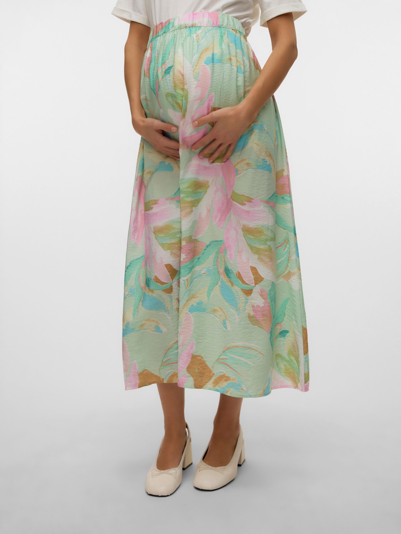 Yhdistä suosikkitoppisi ja -paitasi upeaan hameeseen, joka istuu hyvin myös raskausaikana ja luo moniin tilanteisiin sopivan, ilmavan ilmeen.