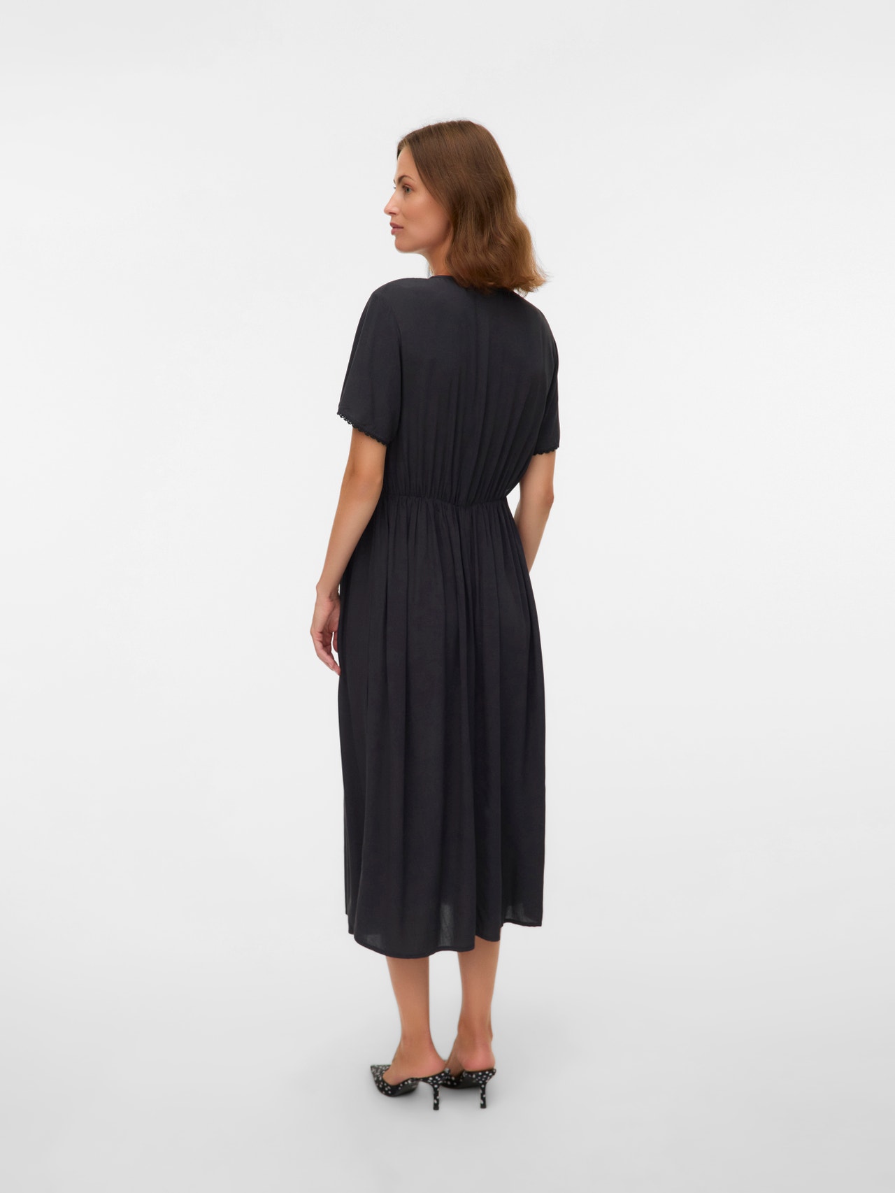 - Lisä yksityiskohdat : Brodyyripitsiset detaljit, Leikkauslinja vatsakummun yläpuolella, Muotolaskokset, Kerätyt yksityiskohdat