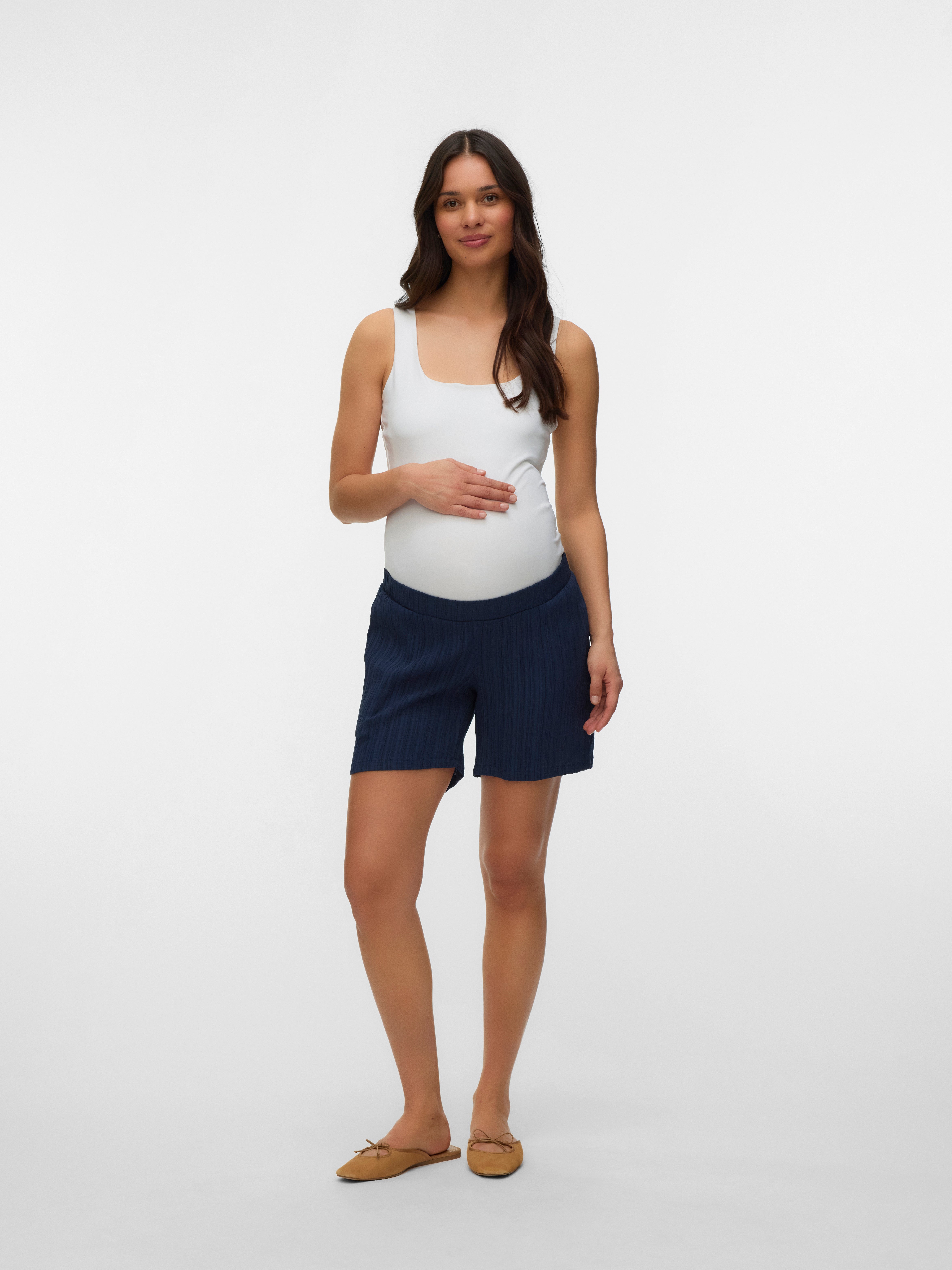 Luo upeita kesätyylejä vaatekaappien luottovaatteiden avulla – pehmeät ja ilmavat shortsit on suunniteltu koko raskausajalle ja näyttävät ajattomilta tilanteesta riippumatta..