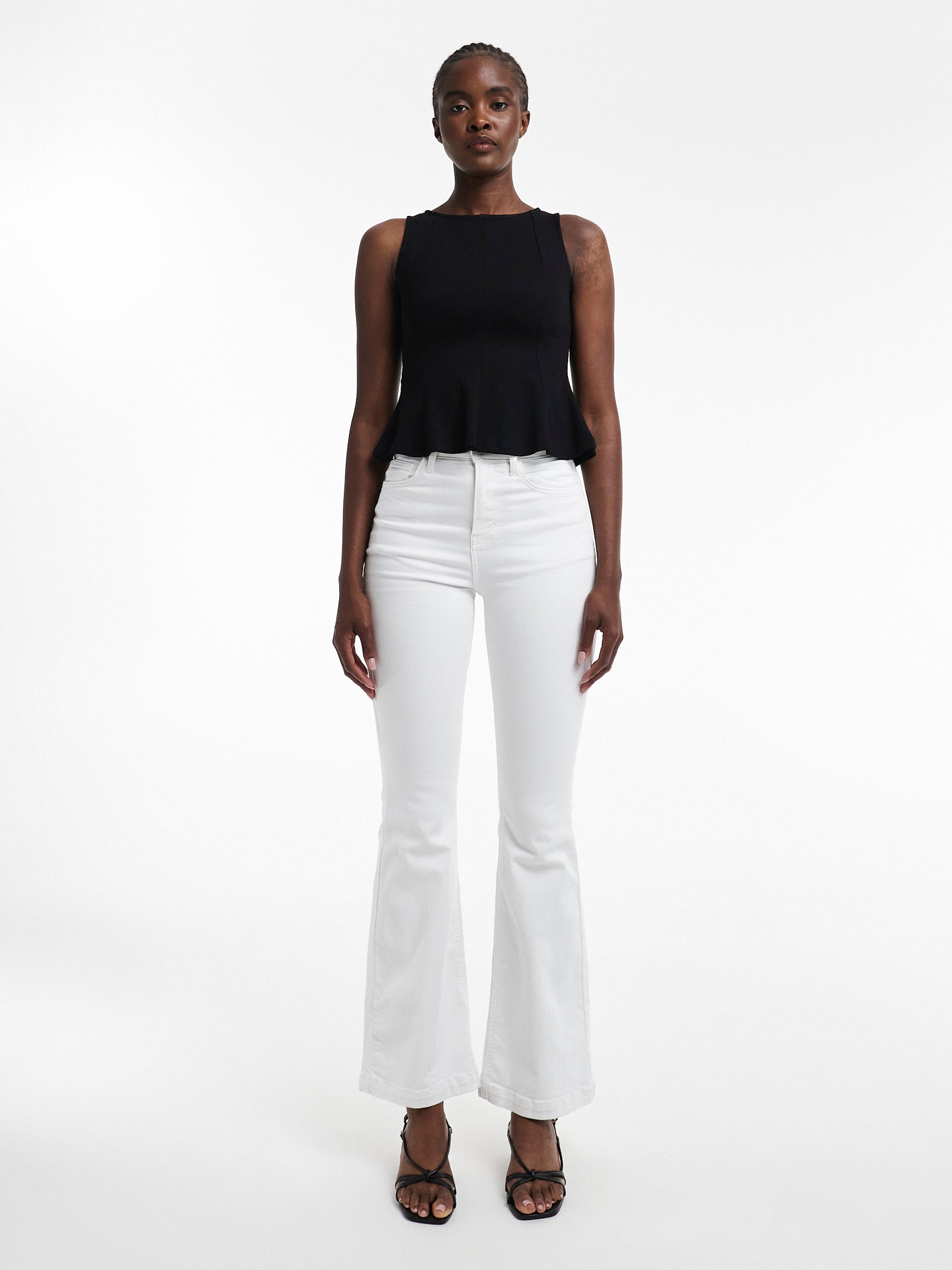 Tervehdi uutta statement-farkkuasi. Nämä levenevät TOPSHOP-farkut kanavoivat vintage-tunnelmaa modernilla särmällä – ne on suunniteltu pidentämään jalkojasi ja kohottamaan jokapäiväistä ilmettäsi. Korkea vyötärö, vartaloa imarteleva istuvuus ja rohkea leveneminen polvesta alaspäin tarjoavat täydellisen tasapainon retroviileän ja nykyaikaisen tyylikkyyden välillä. Yhdistä lyhennettyyn neuleeseen, tyylikkääseen bodyun tai strukturoituun bleiseriin – nämä farkut puhuvat kaiken.