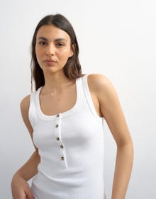 Päivitä vaatekaappisi hihattomalla topilla – täydellinen kerrospukeutumiseen. Etsitkö uusia arjen luottovaatteita vai jotain, joka erottuu? Meiltä löydät tyylejä joka hetkeen. Valitse ribattu tank top, joka viimeistelee arkiasun – täydellinen bomberin alle tai avoimen paidan kanssa. Suuntaatko ulos? Hihaton toppi on myös täydellinen valinta huoliteltuun ilmeeseen. Olipa tyylisi mikä tahansa, se tuo asuun naisellisen viimeistelyn.