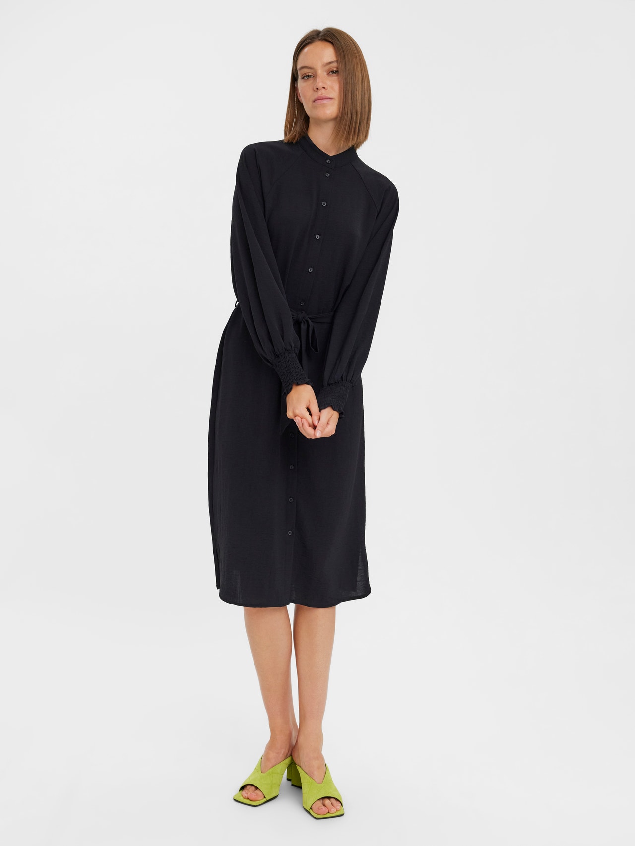 L/S SHIRT DRESS WITH LOOSE FIT AND BELT AT WAIST