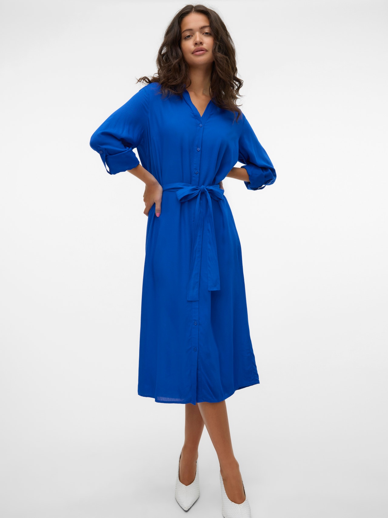 Cette robe est le choix idéal pour les jours où composer une tenue semble impossible. L'association du confort et du style fait de cette robe une pièce idéale au quotidien. Portez-la selon votre humeur. - Type d'article : Robe - Col : Col en V - Manches : Manches longues - Poignets : Poignets boutonnés - Fermeture : Fermeture par bouton - Longueur/Taille : Longueur genou - Détails : Ceinture à la taille - Coupe : Regular Fit