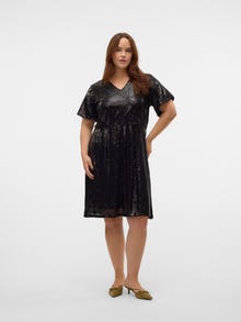 Chaque fête mérite une robe de soirée appropriée. Cette superbe robe vous mettra d'humeur à faire la fête en un rien de temps. Portez-la avec une paire de talons et vos accessoires préférés pour un look festif spectaculaire. Les articles Curve sont conçus pour s'adapter aux silhouettes féminines galbées.. - Type d'article : Robe de soirée - Col : Col en V - Manches : Manches courtes - Longueur/Taille : Court - Doublure : Doublure en polyester pour un aspect opaque - Détails : Taille élastiquée, Sequins - Coupe : Regular Fit