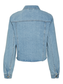 Jamais sans votre veste en jean, pas vrai ? Une veste iconique et intemporelle qui peut être stylisée de nombreuses façons grâce à sa durabilité et sa versatilité. Associez-la à un jean en denim pour obtenir un look cool et assorti. Ajoutez simplement un t-shirt classique pour un look décontracté au quotidien ou ajoutez-la à une robe pour donner du caractère.. - Type d'article : Veste en jean - Col : Col haut - Poignets : Poignets boutonnés - Fermeture : Fermeture par bouton - Poches : Poches de poitrine avec fermeture à bouton - Longueur/Taille : Court