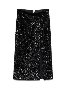 Vous sortez ? Eh bien, nous avons l'idée de la tenue parfaite. Associez votre jupe de soirée à un joli haut, des talons et quelques bijoux et voilà !. - Type d'article : Jupe - Détails : Taille élastique à l'intérieur, Sequins