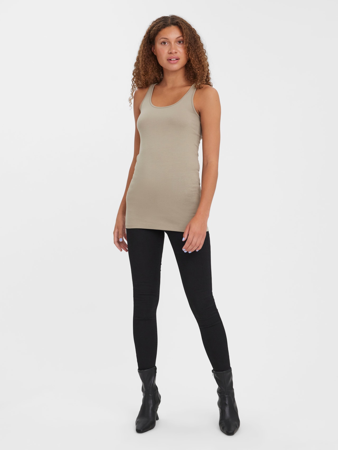 Les basiques sont inévitables dans presque toutes les garde-robes. Nos tops basiques aident à harmoniser une tenue et ce top ne fait pas exception. Portez-le avec une veste par-dessus, un jean mom décontracté et des bottes épaisses, et vous obtiendrez un look décontracté et cool de tous les jours. - Type d'article : Top - Col : Col en U - Manches : Sans manches - Longueur/Taille : Extra long - Coupe : Regular Fit