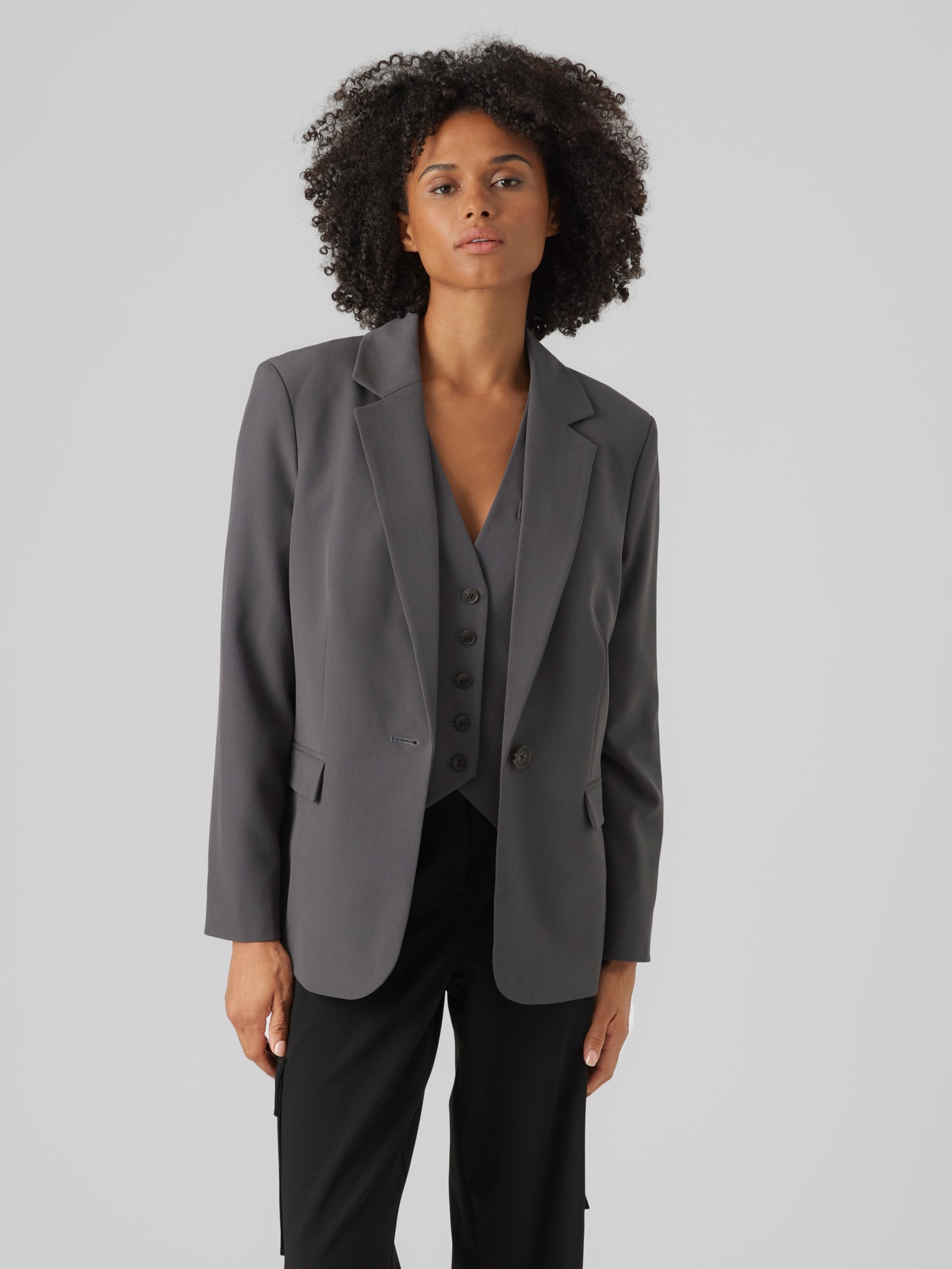 Vous avez un doute sur ce que vous devez porter ? Enfilez un blazer. Ce blazer est votre meilleur choix. Que vous le portiez par-dessus un simple t-shirt, le blazer apporte toujours un côté sophistiqué et une touche classe. Portez-le avec un jean large et des chaussures à talons pour un look de tous les jours. - Type de produit : Blazer - Neck : Col à revers - Fermeture : Fermeture par bouton - Poches : Poches avant - Doublure : Doublure en polyester pour une sensation de confort - Rembourrage : Épaulettes non amovibles - Coupe : Loose Fit