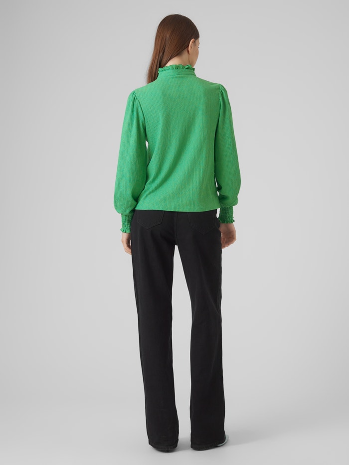 Long-sleeved top with frill details, smock details at the cuffs, and a high neck. Style this stunning top with a pair of high waisted trousers and some heels for a stylish party look.