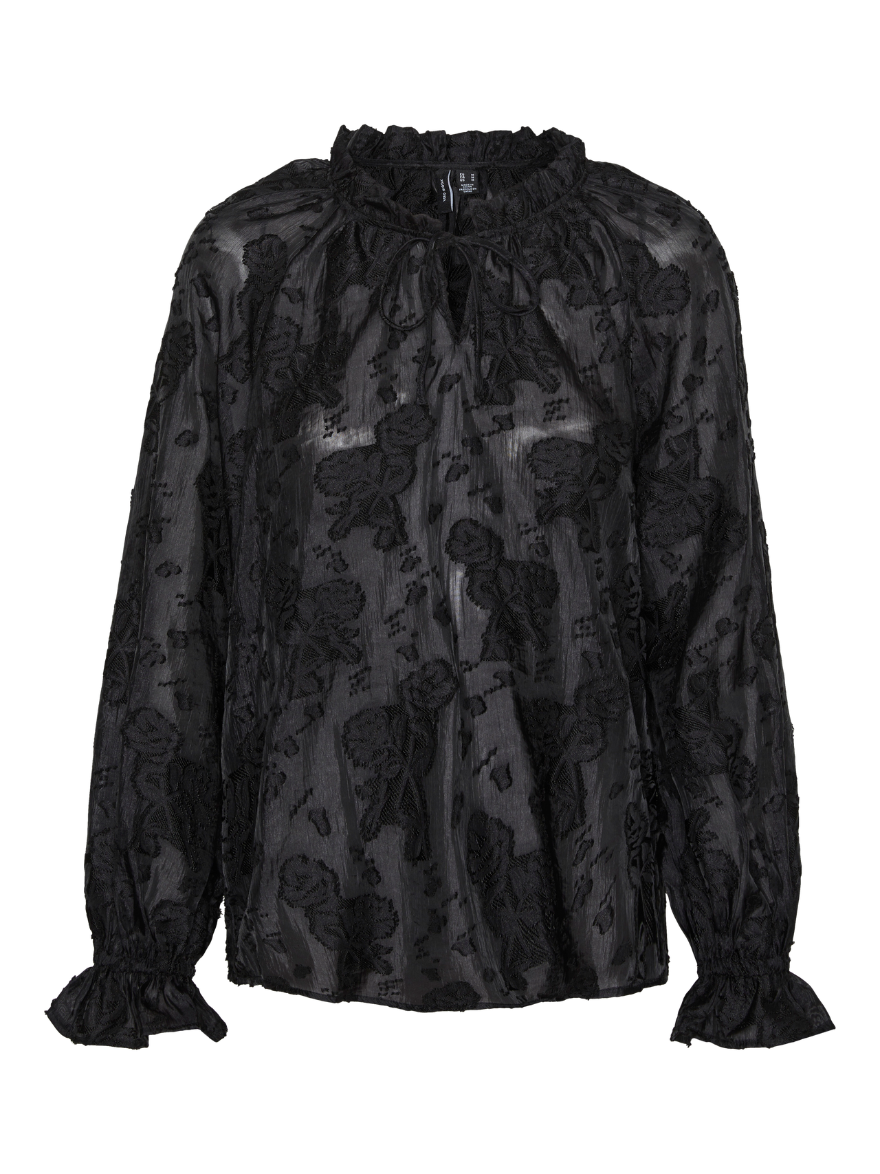 - Type d'article : Top - Col : Col chemise - Manches : Manches longues - Poignets : Poignets ou bas élastiqués - Fermeture : Fermeture à cordon - Détails : Volants - Coupe : Regular Fit