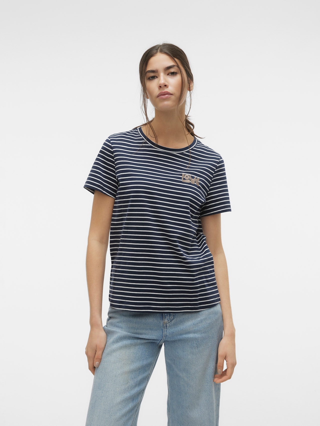 En cas de doute, portez un T-shirt ! Vous ne pouvez jamais vous tromper avec un t-shirt - un choix parfait pour un look cool et intemporel. Portez ce t-shirt avec un joli jean boyfriend et ajoutez une paire de baskets épaisses pour un look urbain et urbain.
