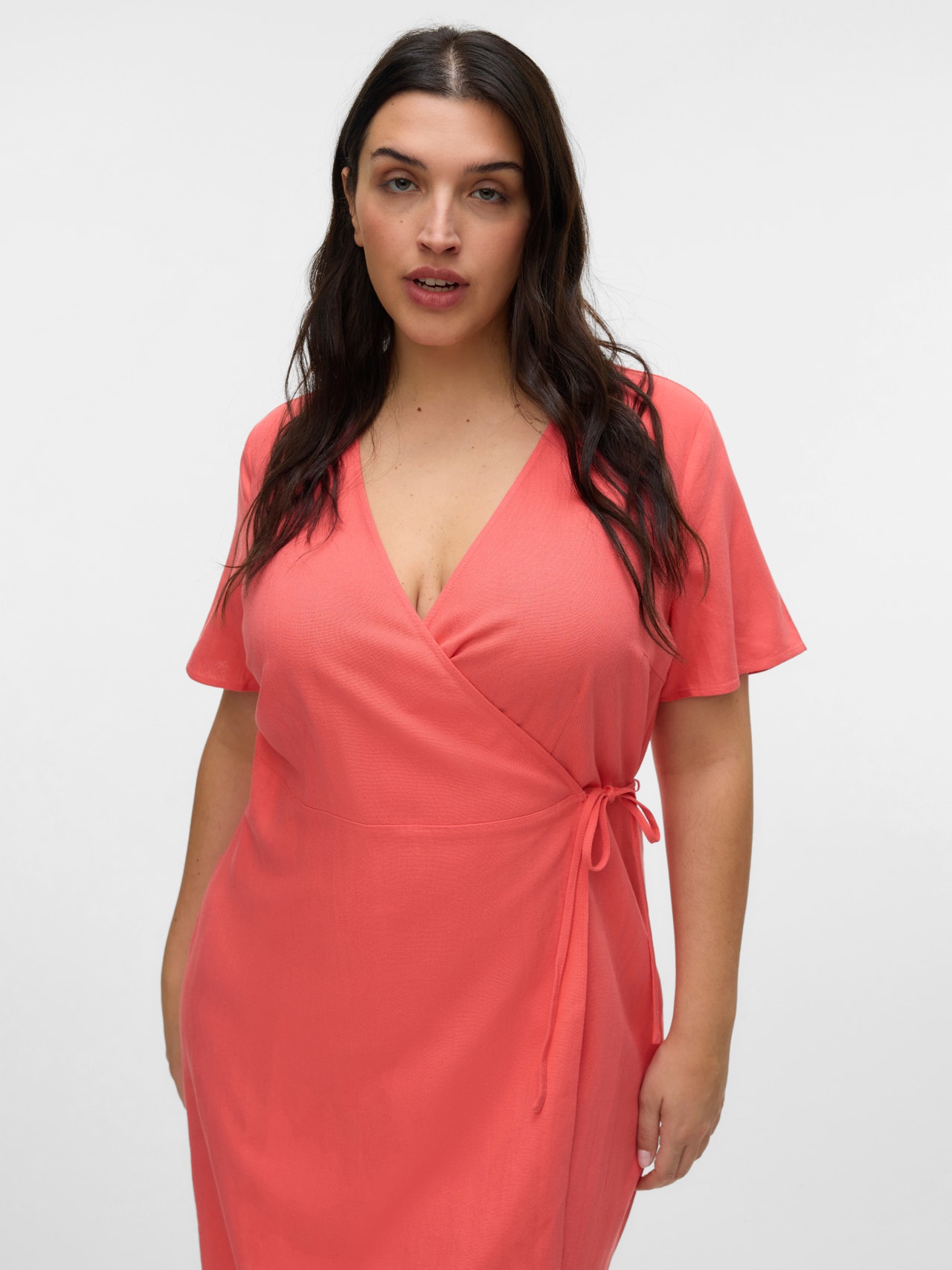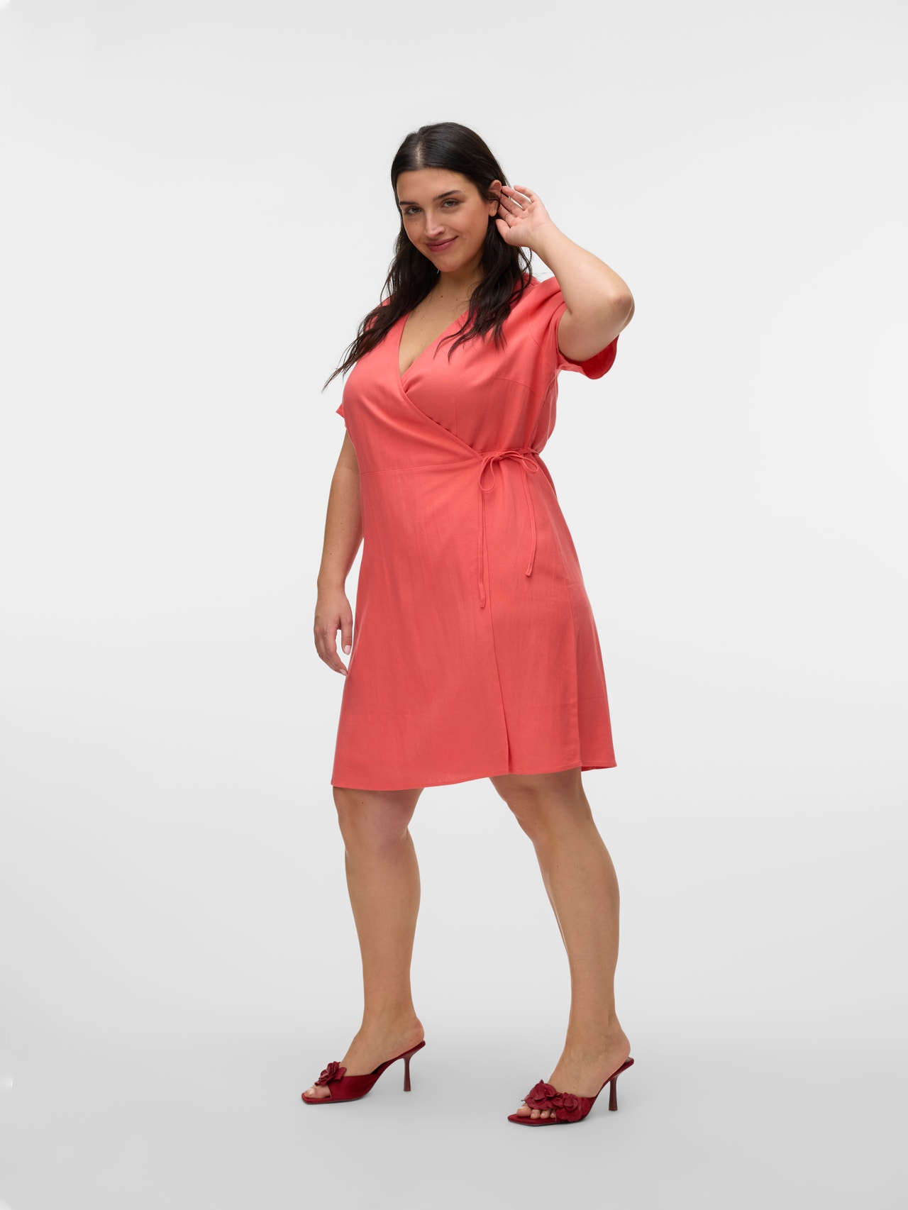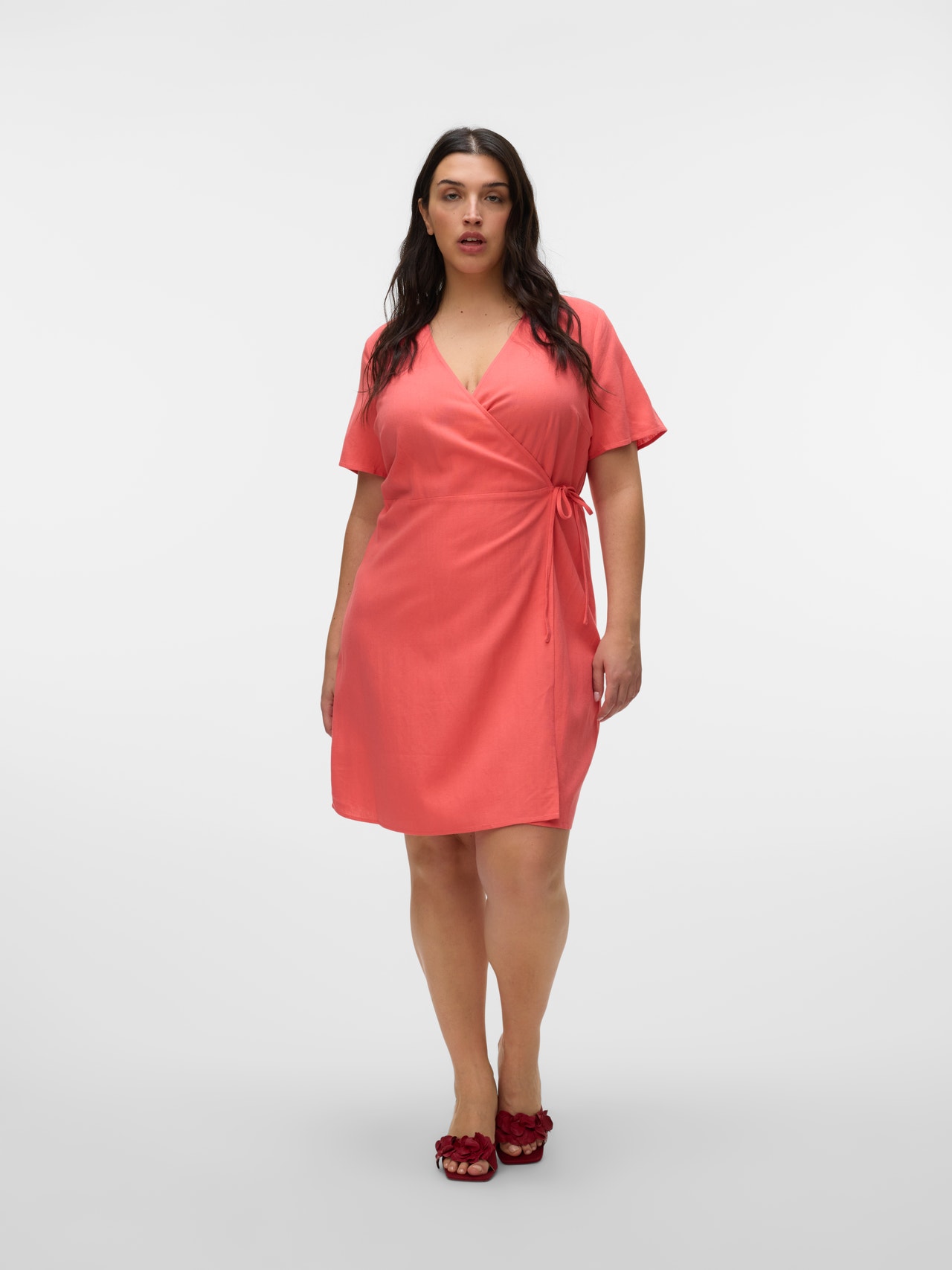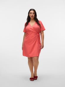 Enveloppez-vous dans de jolies robes cache-cœur. Cette robe portefeuille est un excellent moyen de mettre en valeur votre silhouette harmonieuse. Elle est facile à ajuster et à styliser à votre guise. L'effet portefeuille vous permet de l'attacher de manière aussi lâche ou aussi serrée que vous le souhaitez. Portez-la avec de jolies sandales ouvertes pour un look d'été féminin. Les articles Curve sont conçus pour s'adapter aux silhouettes féminines galbées.. - Type d'article : Robe - Col : Col en V - Manches : Manches courtes - Fermeture : Fermeture à scratch - Longueur/Taille : Court - Type d'imprimés : Imprimé répété sur toute la surface du produit - Coupe : Regular Fit