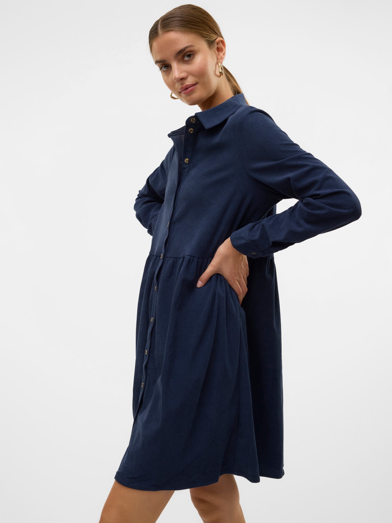 Cette robe est le choix idéal pour les jours où composer une tenue semble impossible. L'association du confort et du style fait de cette robe une pièce idéale au quotidien. Portez-la selon votre humeur. - Type d'article : Robe - Col : Col chemise - Manches : Manches longues - Poignets : Poignets boutonnés - Fermeture : Fermeture par bouton - Longueur/Taille : Court - Détails : Découpe à la taille - Coupe : Regular Fit