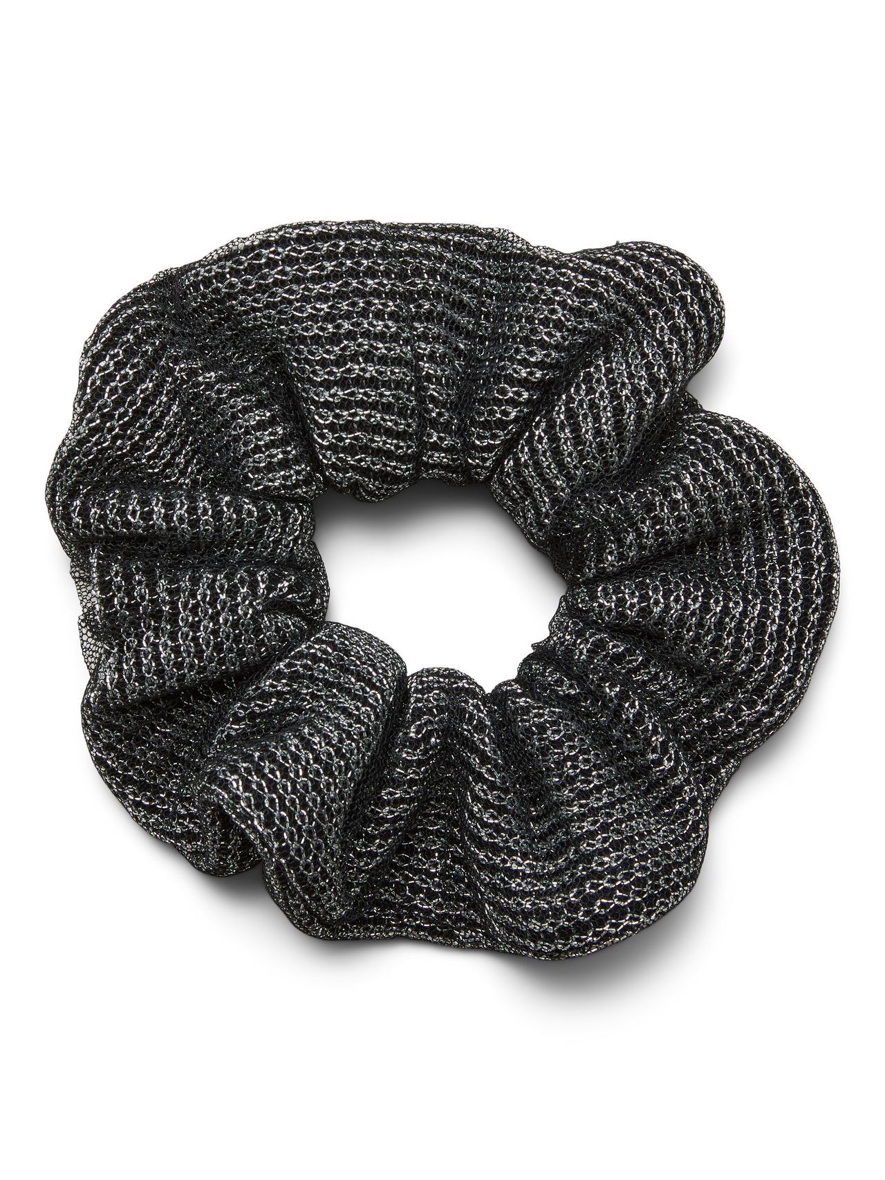 LDS SCRUNCHIE W. TWO-LAYERED FABRIC; INSIDE LAYER W. GLITTER THREAD DETAIL, OUTSIDE LAYER IN SEETHROUGH ORGANZA FABRIC