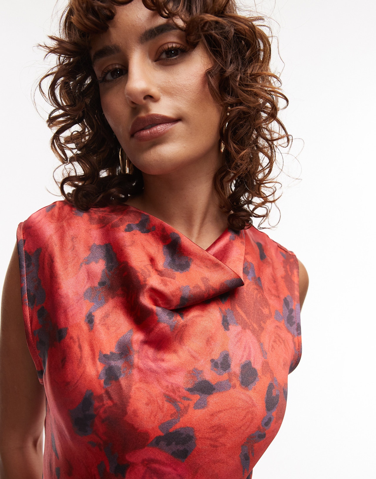 Topshop drape neck maxi dress in red rose - RED