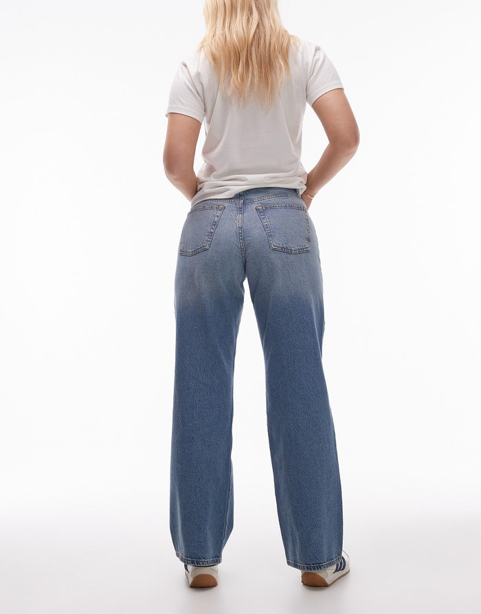 Topshop Hourglass mid rise loose fit straight jean in mid blue - MBLUE
