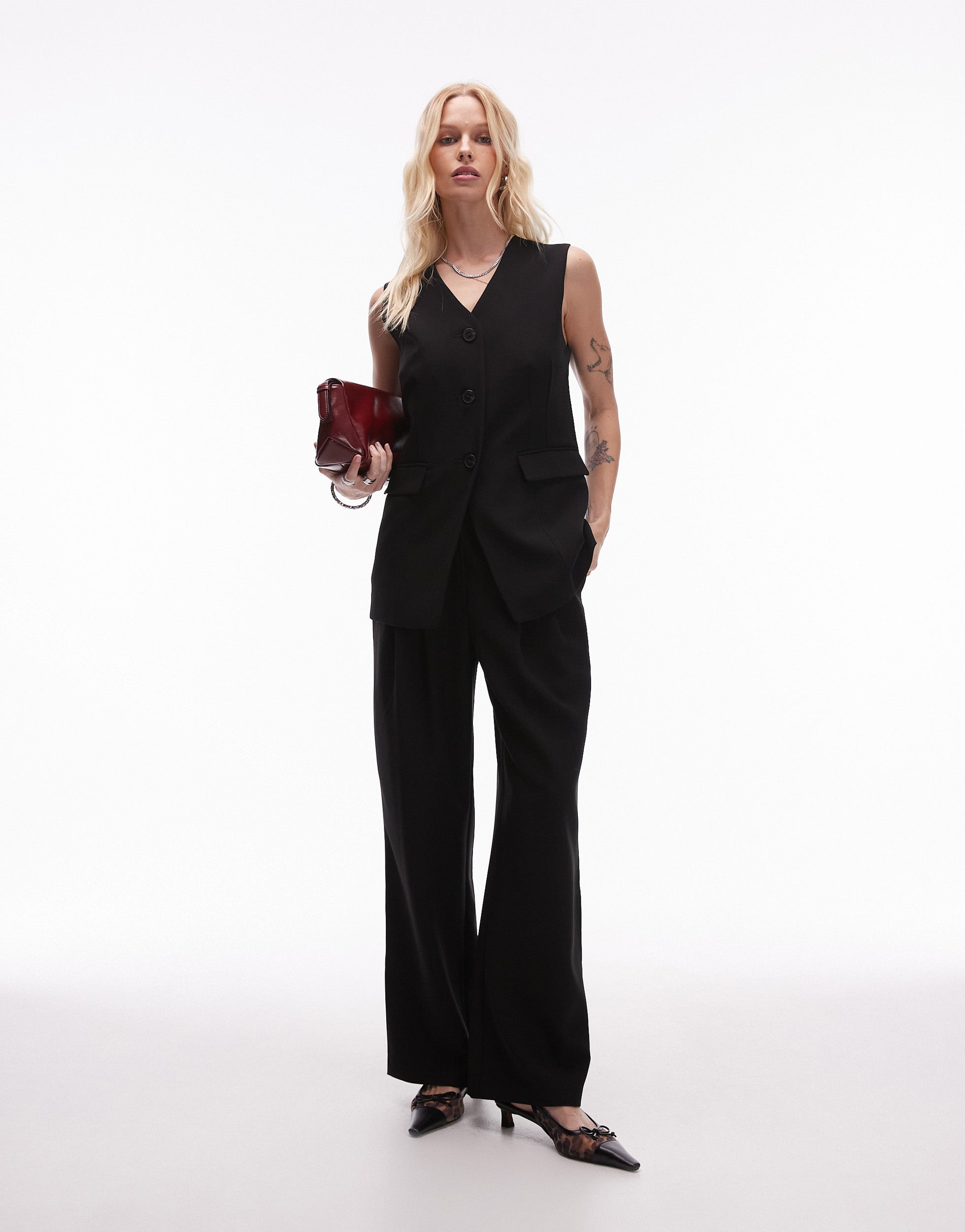 Topshop fitted longline waistcoat in black - BLACK