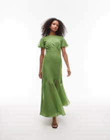 Topshop ruffle sleeve volume hem maxi dress in olive - MGREEN