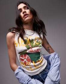 Topshop graphic Mexico Tulum tank in ecru - CREAM