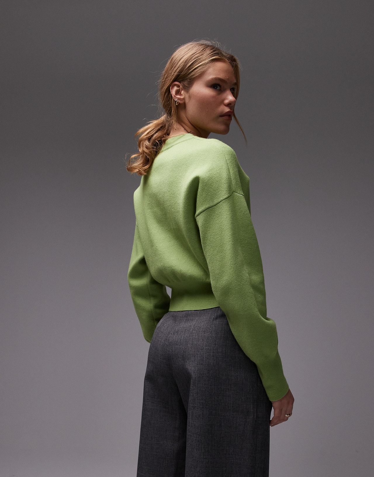 Topshop knitted compact fitted waist cardi in green - MGREEN