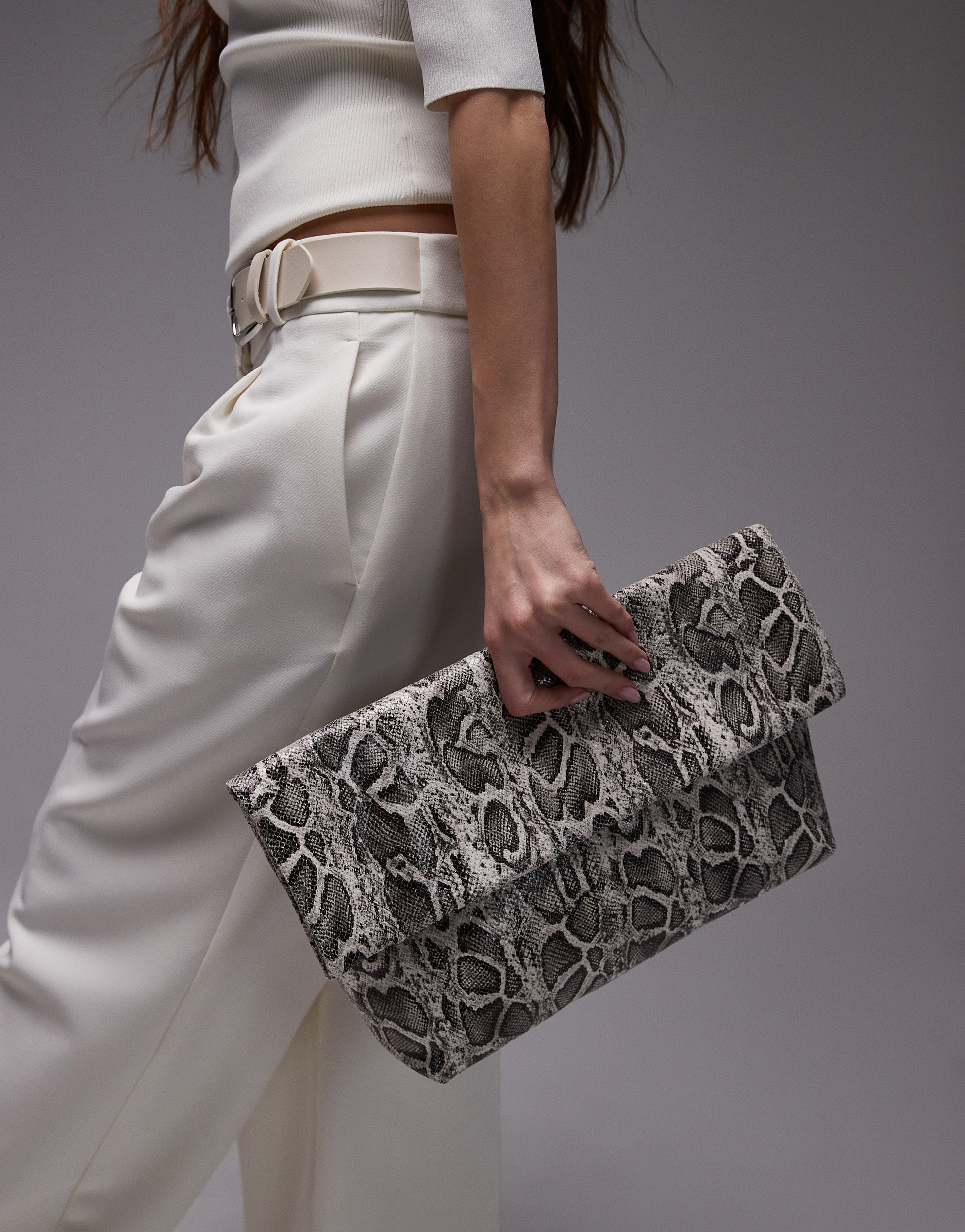 Topshop Georgia folded clutch grab bag in snake print - MULTI