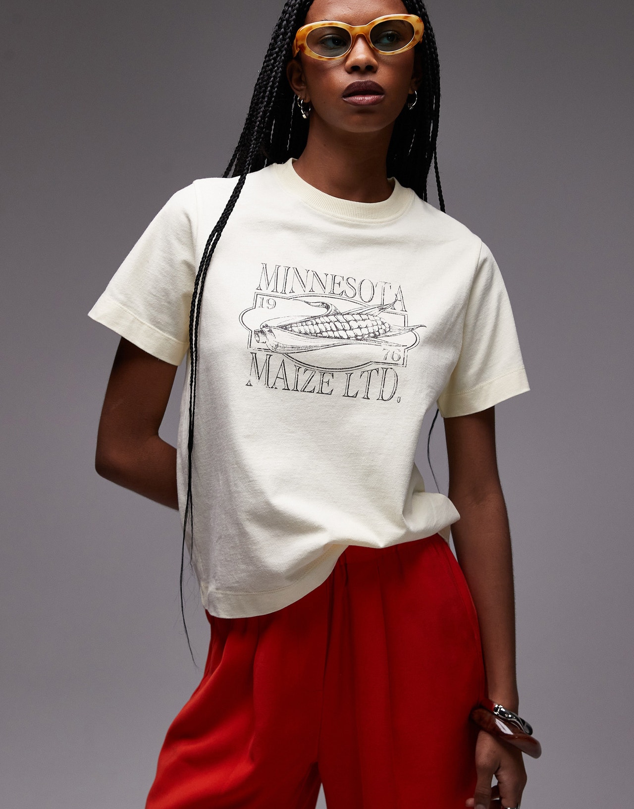 Topshop graphic Minessota boxy tee in buttermilk - YELLOW