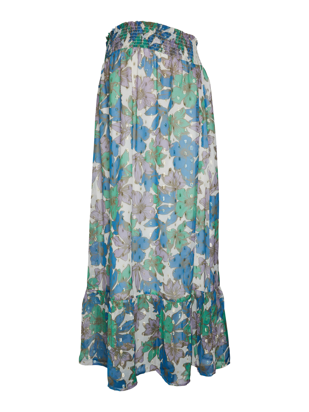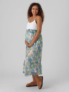LDS MATERNITY HW MIDI SKIRT SMOCK AT WAIST SMALL FRILL DETAIL VISCOSE LINING DETAIL WITH CUTLINE AND GATHERINGS IN SKIRT MLBRIA QUALITY WITH NEW FOIL DETAIL. AOP FLOWER PRINT. Composition: 100% Polyester lining is viscose