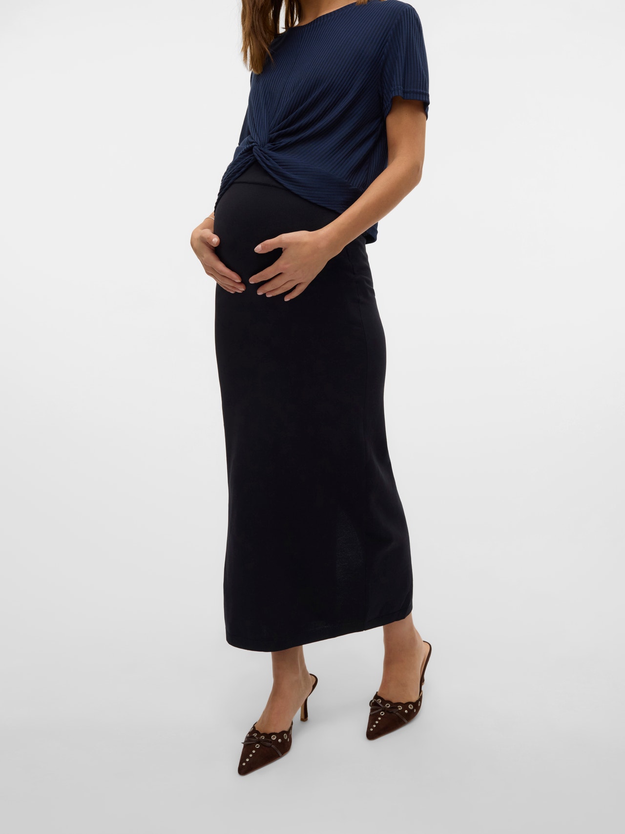 Associez vos hauts et chemises préférés à une jupe cool qui s'adapte parfaitement à votre ventre en pleine croissance et crée un look confortable et aéré qui convient à toutes les occasions.