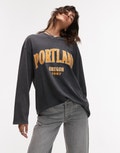 Topshop graphic Portland long sleeve skater tee in grey - GREY