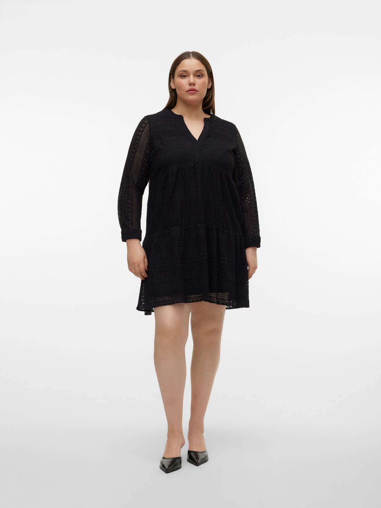 This tunic is the perfect mix between a shirt and a dress. Style it with skinny jeans on chilly days or go for thin tight when the weather gets warmer. Simply add a pair of nice, heeled shoes for a classic everyday look. Curve styles are designed to fit the curved female body. - Detail Type : Blouse - Neck : V-Neck - Sleeve : Long Sleeves (L/S) - Cuffs : Buttoned cuffs - Lining : Cotton jersey lining for comfort and a soft feel - Extra details : Lace detail - Body Type : Curve
